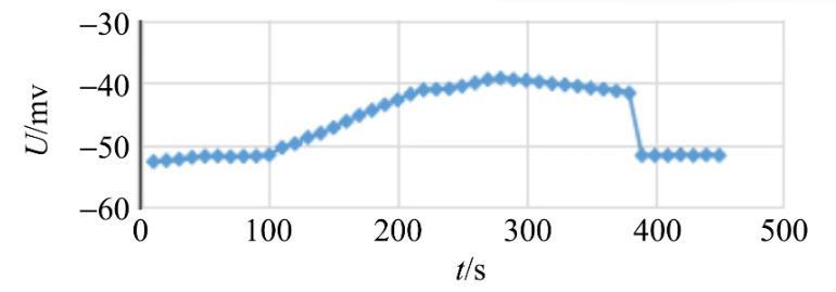金屬吊環這一運動過程中電壓值也趨於平穩,對應於圖2中380~450 s這一時間段的變化曲線.