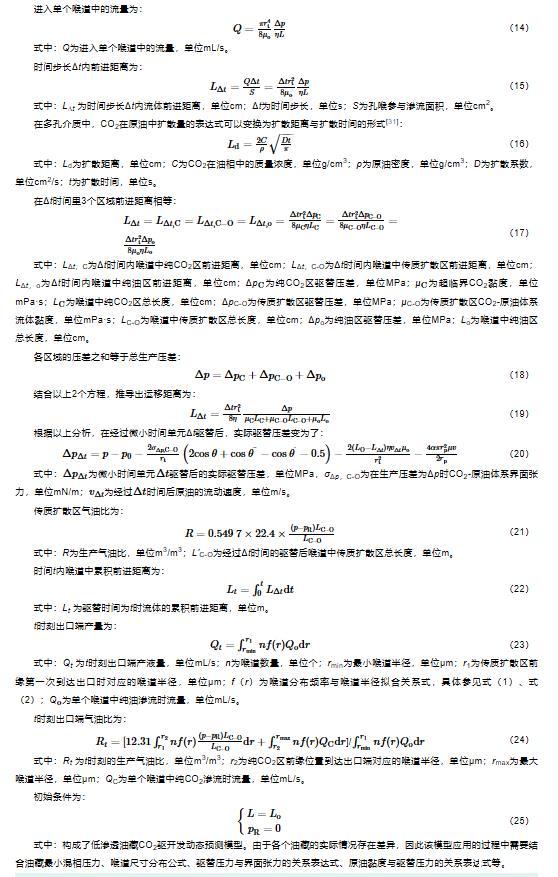 CO2驅能有效提高低滲透油藏采收率,但由於低滲透油藏普遍存在強非均質性,導致CO2驅開發動態難以準確預測。針對該問題,在綜合考慮喉道大小及分布、CO2溶解降黏和界麵張力變化等因素的基礎上,結合CO2驅滲流力學理論,建立了基於時間節點的低滲透油藏CO2驅開發全過程動態預測模型。