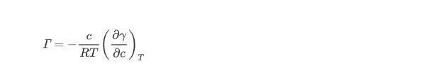 式中,Γ為表麵過剩濃度,mol/cm2;c為表麵活性劑水溶液濃度,%;R為表麵活性劑普氏氣體常數,R=8.315×107;T為溫度,K;γ為界麵張力,mN/m;