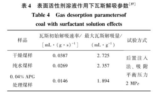 表4表麵活性劑溶液作用下瓦斯解吸參數