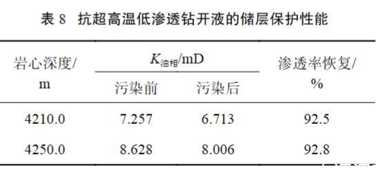 表8抗超高溫低滲透鑽開液的儲層保護性能