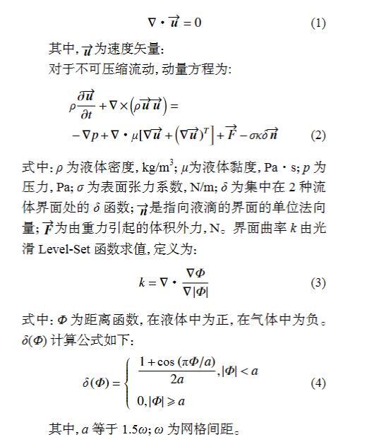 由於通過實驗觀測微米尺度的液滴−顆粒碰撞過程十分困難,故主要采用數值模擬方法開展相關研究。為求解多相流的界麵形變問題,前人曾采用過Lattice-Boltzmann、Level-Set、VOF、CLSVOF等模型。由於前人研究案例中CLSVOF模型對液滴形態的模擬結果能與實驗結果高度吻合,筆者采用此模型對塵−霧碰撞過程進行模擬。