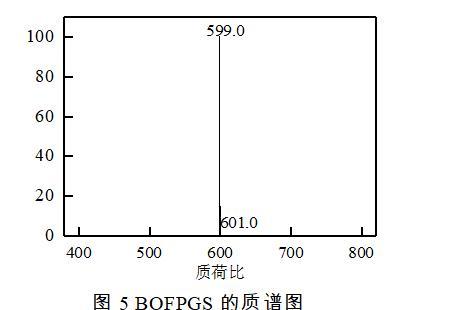 圖5為BOFPGS的質譜圖表征,數據如下:MS(API):C13H11O3F16SO3-[M-H]-的質荷比理論值為599.00,實測值為599.0。