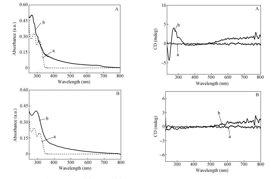 這個位置對應於香豆素基團的吸收帶,因此歸屬於香豆素基團的CD信號。在CODA單體LB膜中,香豆素基團間形成了緊密的H-聚集,而且由於相鄰兩個芳香環受到π-π體係間靜電斥力的影響以"麵對麵"重疊排列的可能性很小,通常存在錯位。在單分子膜壓縮過程中,香豆素基團間強烈的π-π堆積形成螺旋排列,並且由於過度擠壓,體係鏡麵對稱性被打破,某一方向的螺旋堆砌結構在LB膜中占主導地位,從而產生超分子手性。需要指出的是,CODA單體LB膜手性信號強度和方向與沉積過程密切相關,即不同批次製備出的LB膜手性信號強度大小不一甚至是方向相反。換句話說CODA單體LB膜形成的螺旋結構方向是隨機的。但是對於CO2DA單體LB膜,分子排列較鬆散,存在局部的缺陷,香豆素基團間無法形成緊密有序的規整排列,沒有觀察到明顯的CD信號(圖5(B))。
