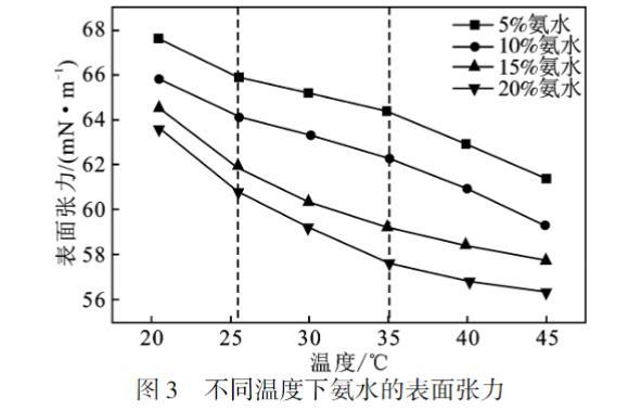 圖3 不同溫度下氨水的表麵張力