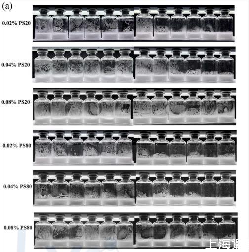 研究結果顯示,表麵活性劑濃度越高,表麵張力降低越明顯。比較兩種常用表麵活性劑,PS20降低表麵張力的效果比PS80更強。